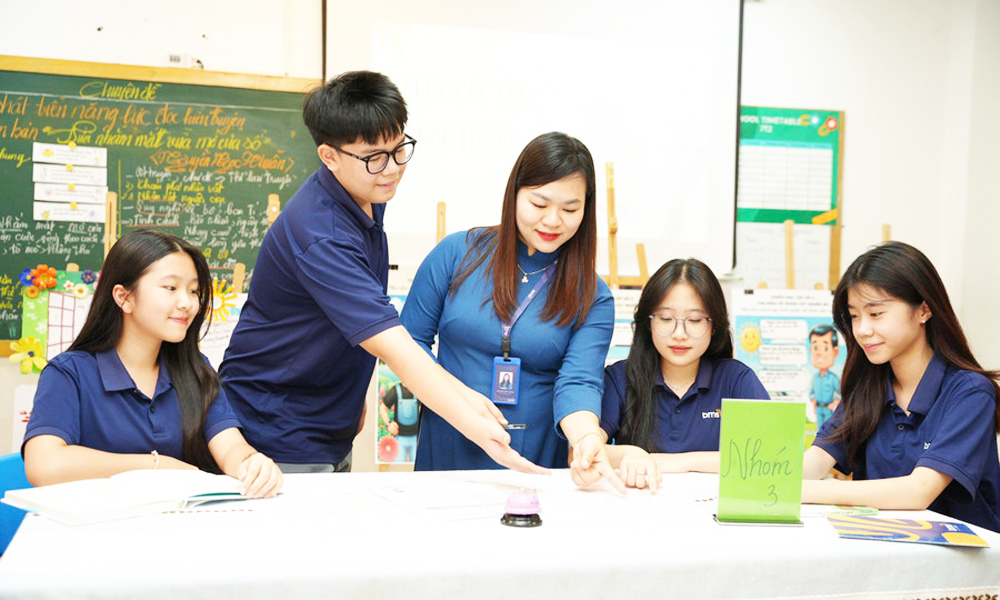 Cô trò Trường Trung học cơ sở - Trung học phổ thông Ban Mai (Hà Nội). |