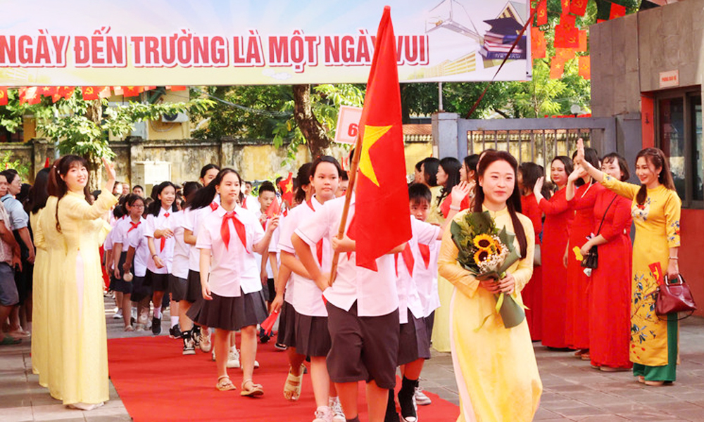 Thầy cô giáo cùng học sinh Trường trung học cơ sở Chu Văn An, Hà Nội. (Ảnh: Báo Nhân dân) |