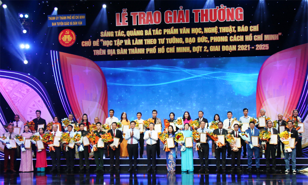 Tối 4/12, Ban Tuyên giáo và Dân vận Thành ủy Thành phố Hồ Chí Minh tổ chức Lễ trao Giải thưởng sáng tác, quảng bá tác phẩm văn học, nghệ thuật, báo chí chủ đề “Học tập và làm theo tư tưởng, đạo đức, phong cách Hồ Chí Minh” đợt 2, giai đoạn 2021-2025.