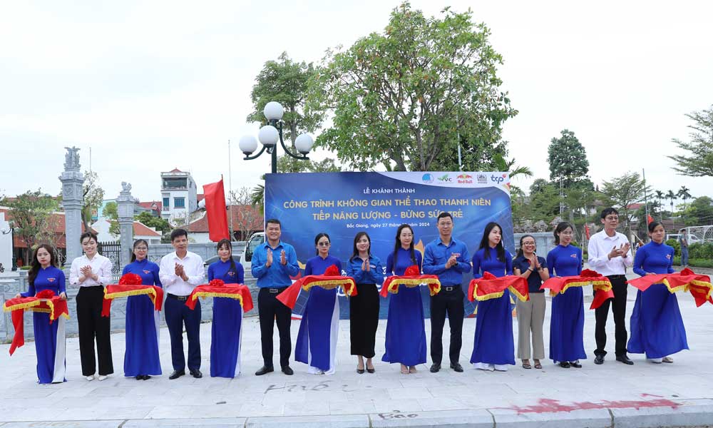 | Các đồng chí: Nguyễn Lưu Trà My, Phó Trưởng Ban đoàn kết tập hợp thanh niên T.Ư Đoàn, Phó Chủ tịch Hội Doanh nhân trẻ Việt Nam; Thân Trung Kiên, Bí thư Tỉnh đoàn, Chủ tịch Hội LHTN tỉnh Bắc Giang cắt băng khánh thành không gian thể thao thanh niên “Tiếp năng lượng, bừng sức trẻ” tại tổ dân phố Ninh Khánh. |