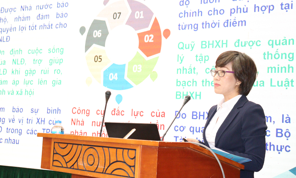 Đại diện Bảo hiểm xã hội tỉnh thông tin các nội dung mới về chính sách bảo hiểm xã hội, bảo hiểm y tế. |