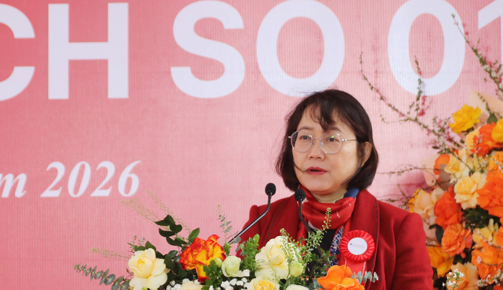 Bà Lê Thị Hoàng Hà phát biểu chỉ đạo tại lễ khai trương. |