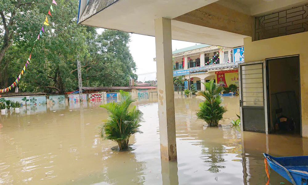 Trường Tiểu học Vân Hà bị ngập sâu. |