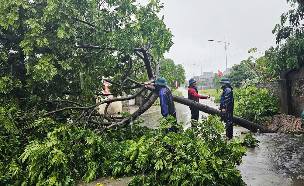 Gió lớn khiến một số cây xanh bị đổ, lực lượng chức năng xã Hiệp Hoà khẩn trương thu dọn, bảo đảm an toàn giao thông và hạn chế thiệt hại cho người dân. |