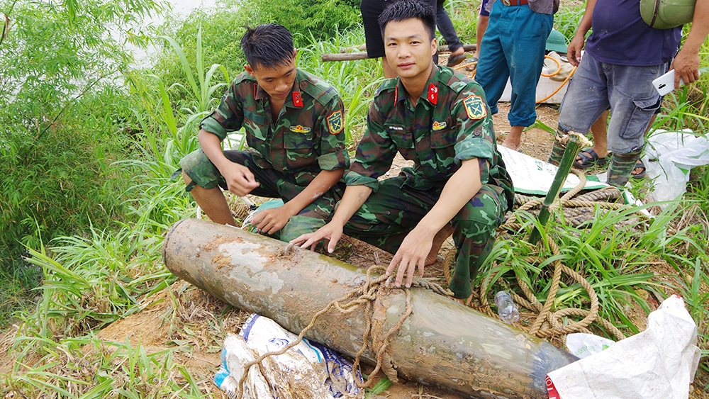 (BGĐT) - Ngày 20/7, tại huyện Việt Yên, lực lượng công binh Bộ CHQS tỉnh Bắc Giang đã trục vớt quả bom nặng 350 kg.
