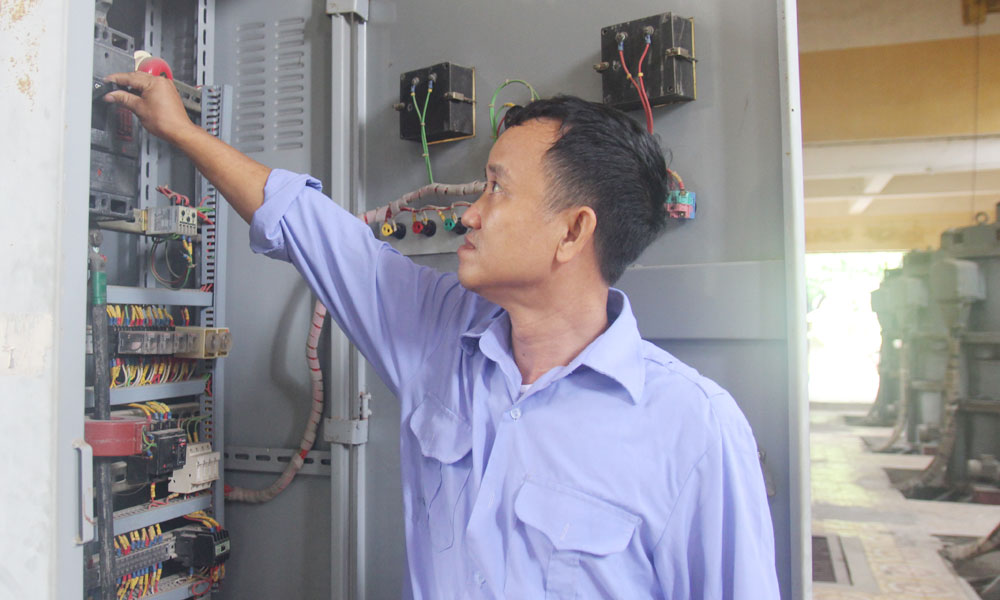 Công nhân Trạm bơm Cống Bún (TP Bắc Giang) vận hành máy bơm để bơm tiêu thoát nước cho TP và các khu công nghiệp, thị xã Việt Yên. |