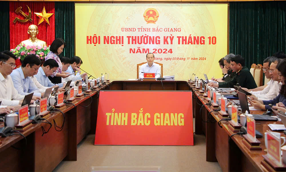 BẮC GIANG - Ngày 5/11, đồng chí Mai Sơn, Quyền Chủ tịch UBND tỉnh Bắc Giang chủ trì hội nghị thường kỳ UBND tỉnh tháng 10. Dự hội nghị có các đồng chí: Lâm Thị Hương Thành, Phó Chủ tịch Thường trực HĐND tỉnh; Phan Thế Tuấn, Phó Chủ tịch UBND tỉnh cùng đại diện lãnh đạo các sở, ban, ngành.