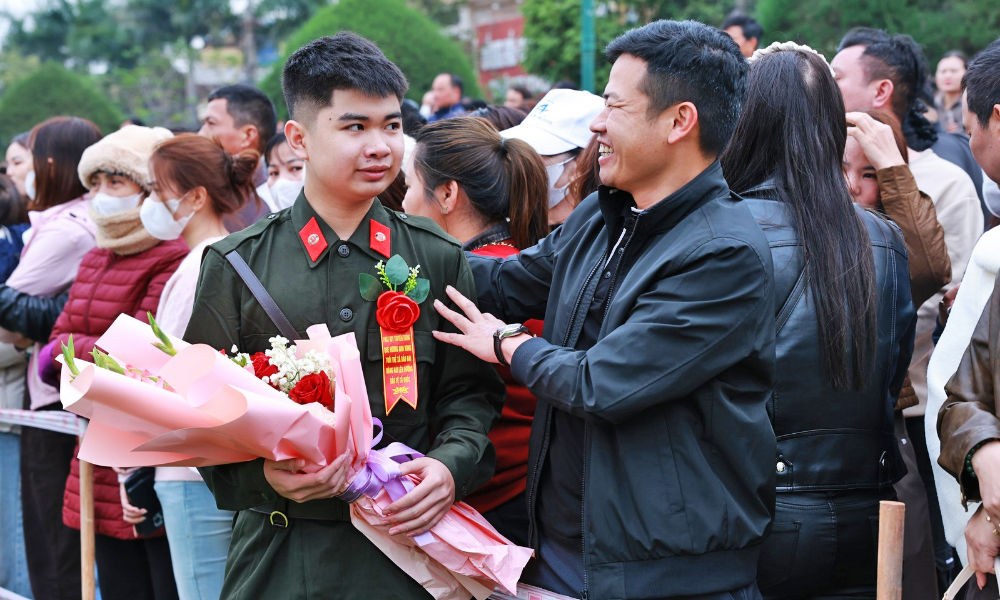 Người thân tân binh động viên con em trước khi lên đường nhập ngũ. |