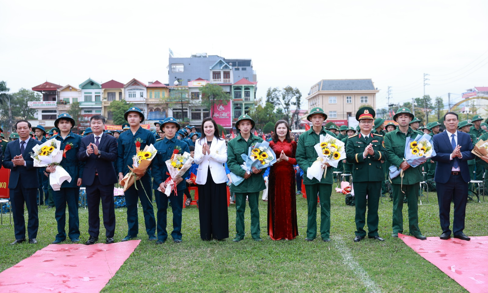 Phát biểu tại buổi lễ, đồng chí Lâm Thị Hương Thành ghi nhận và biểu dương sự nỗ lực của các cấp, ngành, địa phương trong công tác tuyển chọn và gọi công dân nhập ngũ năm 2026. Đồng chí nhấn mạnh, những năm qua, dưới sự lãnh đạo của các cấp ủy, chính quyền, sự phối hợp chặt chẽ của các ban, ngành, đoàn thể và sự đồng thuận của Nhân dân, công tác tuyển quân của tỉnh luôn hoàn thành 100% chỉ tiêu được giao. Chất lượng thanh niên nhập ngũ ngày càng được nâng lên.