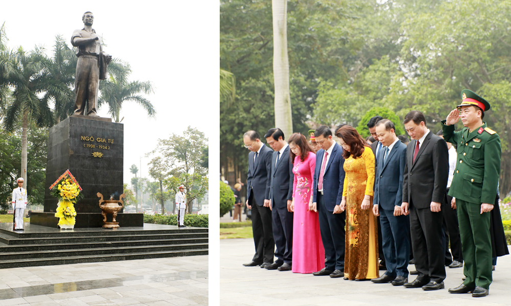 Bí thư Tỉnh ủy Nguyễn Hồng Thái dẫn đầu Đoàn đại biểu tỉnh dâng hương tại Tượng đài đồng chí Ngô Gia Tự (phường Tam Sơn). |