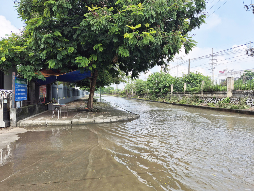 Trưa 10/10, một số đoạn đường tại Khu công nghiệp Song Khê - Nội Hoàng bị ngập nhẹ. |
