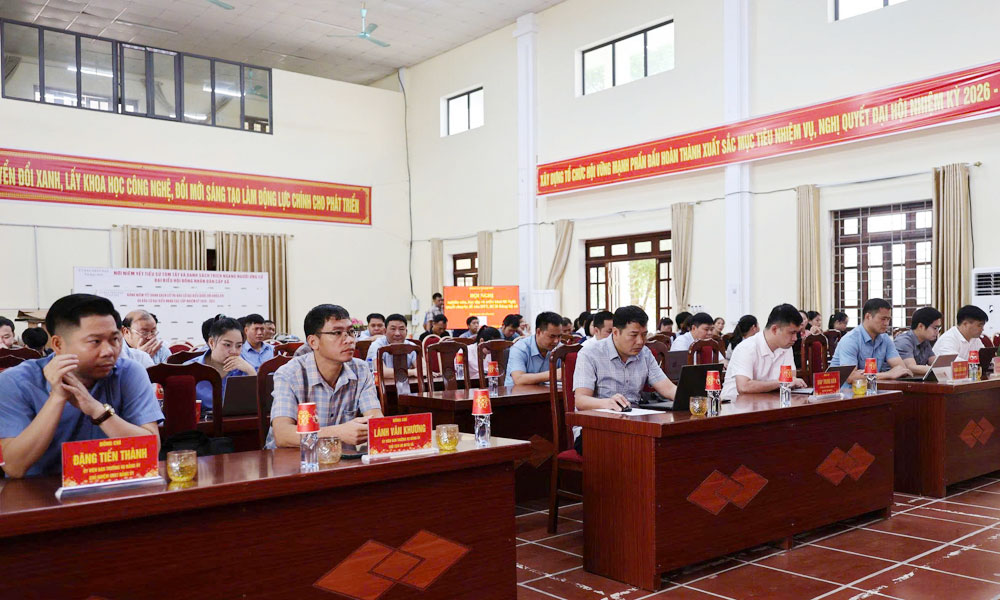 Đại biểu dự tại điểm cầu UBND xã Đại Sơn. |