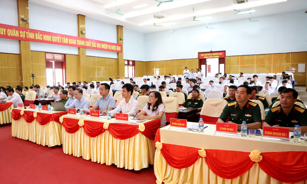 Đại biểu dự tại điểm cầu trung tâm Bộ Chỉ huy quân sự tỉnh Bắc Ninh. |