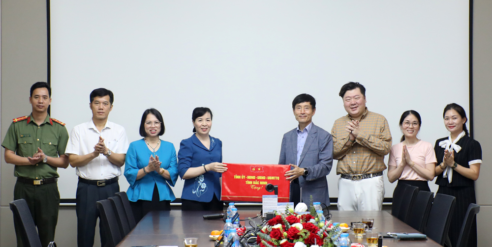 Phát biểu tại đây, đồng chí Nguyễn Thị Hà chúc mừng những kết quả tích cực trong sản xuất, kinh doanh mà doanh nghiệp đạt được trong gần 10 năm đầu tư tại Bắc Ninh. Đồng thời, cảm ơn Ban giám đốc luôn dành sự quan tâm, chăm lo đến việc làm, đời sống công nhân lao động.