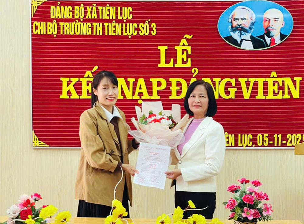 Chi bộ Trường Tiểu học Tiên Lục số 3, Đảng bộ xã Tiên Lục tổ chức lễ kết nạp đảng viên. |