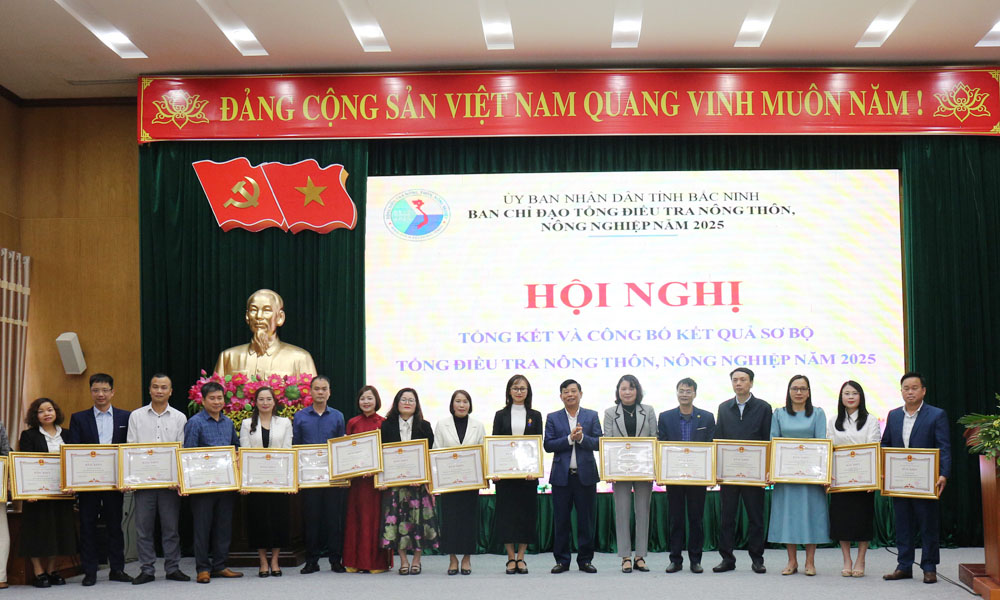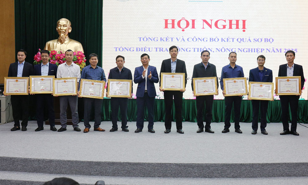 Tại hội nghị, 10 tập thể, 20 cá nhân có thành tích xuất sắc trong thực hiện Tổng điều tra nông thôn, nông nghiệp năm 2025 được Chủ tịch UBND tỉnh tặng Bằng khen.