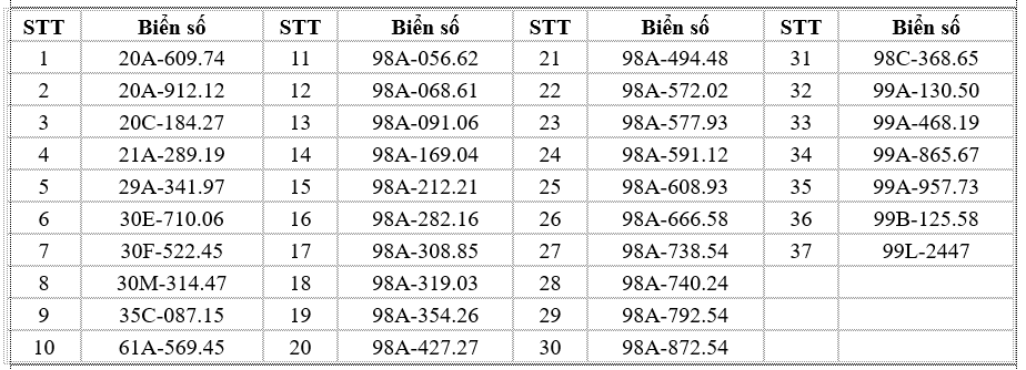 Bắc Ninh: Danh sách 544 trường hợp xe ô tô vi phạm bị phạt nguội từ ngày 10 đến 16/1/2026
