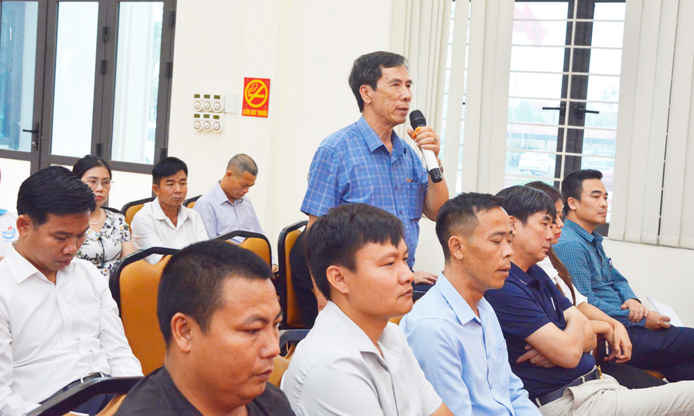 Đại diện doanh nghiệp xã Hợp Thịnh đề xuất tại buổi đối thoại với người đứng đầu cấp ủy địa phương. |