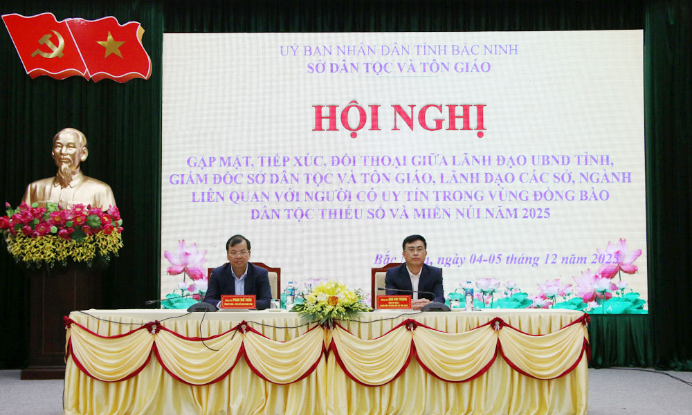 BẮC NINH - Ngày 5/12, các đồng chí: Phan Thế Tuấn, Phó Chủ tịch UBND tỉnh; Đào Duy Trọng, Giám đốc Sở Dân tộc và Tôn giáo cùng đại diện một số sở, ngành tỉnh có buổi gặp mặt, đối thoại với 200 người có uy tín trong đồng bào dân tộc thiểu số.