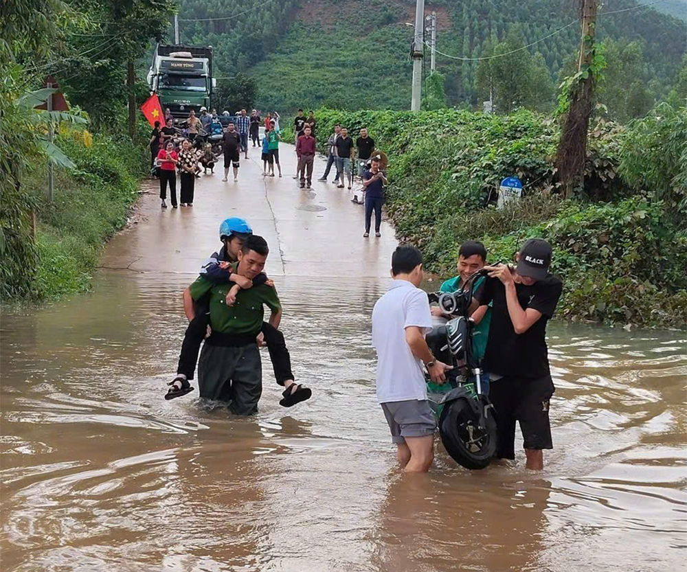 Tại xã Tam Tiến, 16 hộ dân của thôn Bãi Lát, Chàm, Mỏ Trạng, Tiến Thịnh bị nước tràn vào nhà, các lực lượng đang tham gia giúp người dân di chuyển người và tài sản lên khu vực cao. Cùng đó, lực lượng dân quân cũng được cử canh trực, hướng dẫn người tham gia giao thông không đi qua tuyến đường Quốc lộ 17 do sạt lở dẫn đến tắc đường. Tại xã Yên Thế, 7 hộ dân bị cô lập, Bộ Chỉ huy quân sự đã điều xuồng cao tốc để di chuyển các hộ dân tại đây.