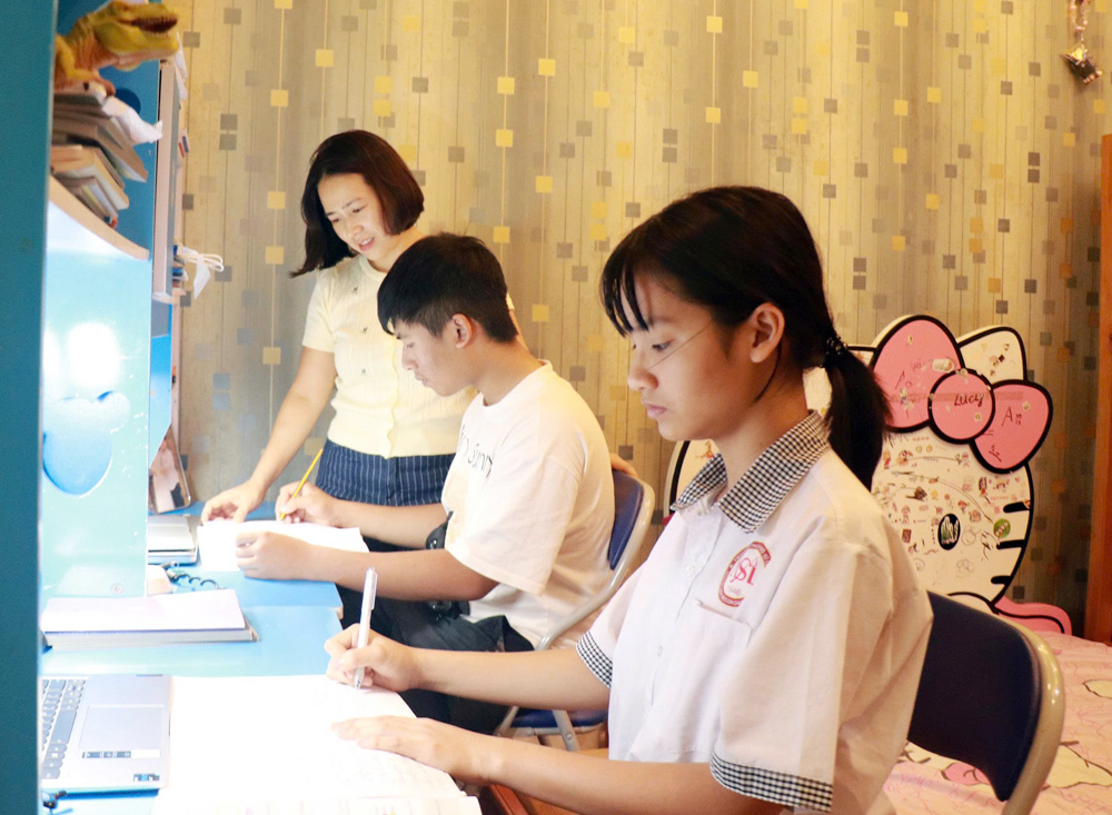 Gia đình anh Nguyễn Ngọc Dương (phường Bắc Giang) luôn đồng hành với con trong học tập. |