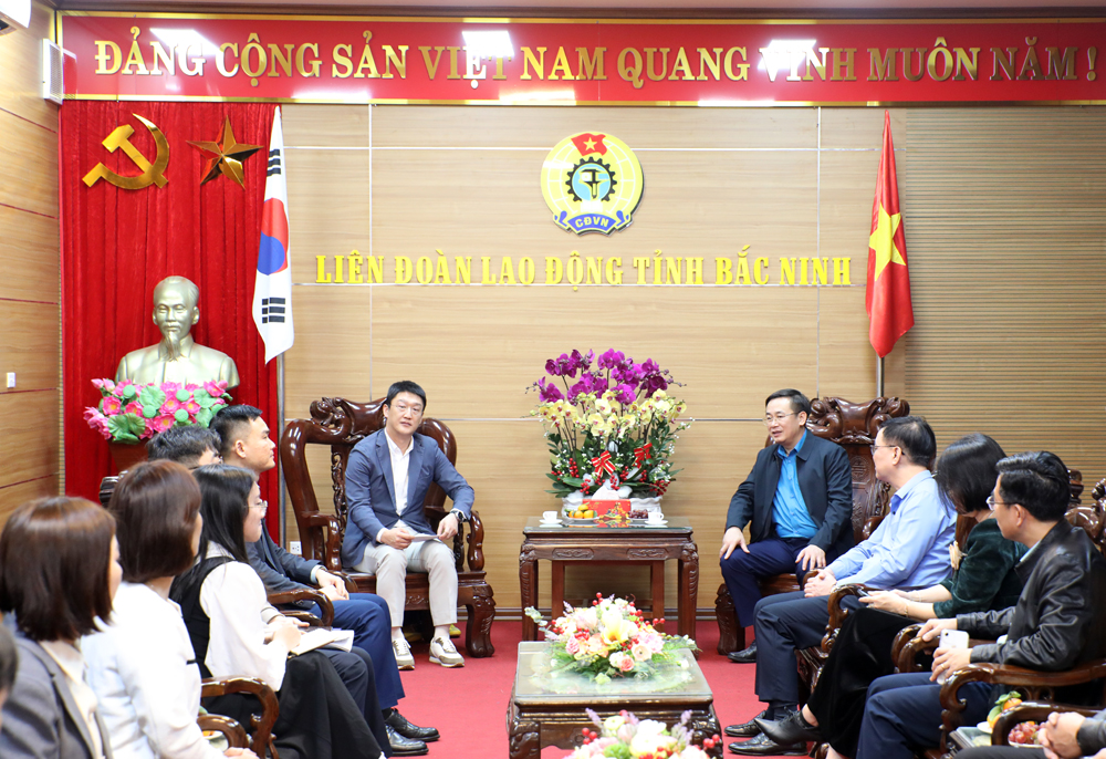 BẮC NINH - Chiều 30/12, tại trụ sở cơ quan (phường Tân Tiến), Liên đoàn Lao động tỉnh Bắc Ninh tổ chức tiếp đón, làm việc với lãnh đạo, Công đoàn Công ty trách nhiệm hữu hạn Samsung Display Việt Nam (SDV), Khu công nghiệp Yên Phong.