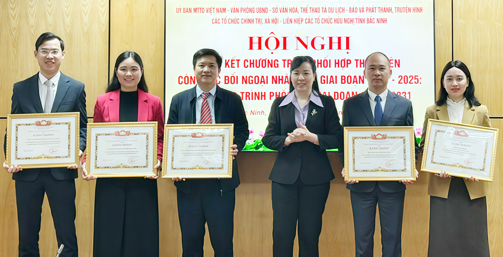 Nhân dịp này, 5 tập thể, 2 cá nhân có thành tích xuất sắc trong chương trình phối hợp thực hiện công tác đối ngoại Nhân dân giai đoạn 2020 - 2025 được khen thưởng.