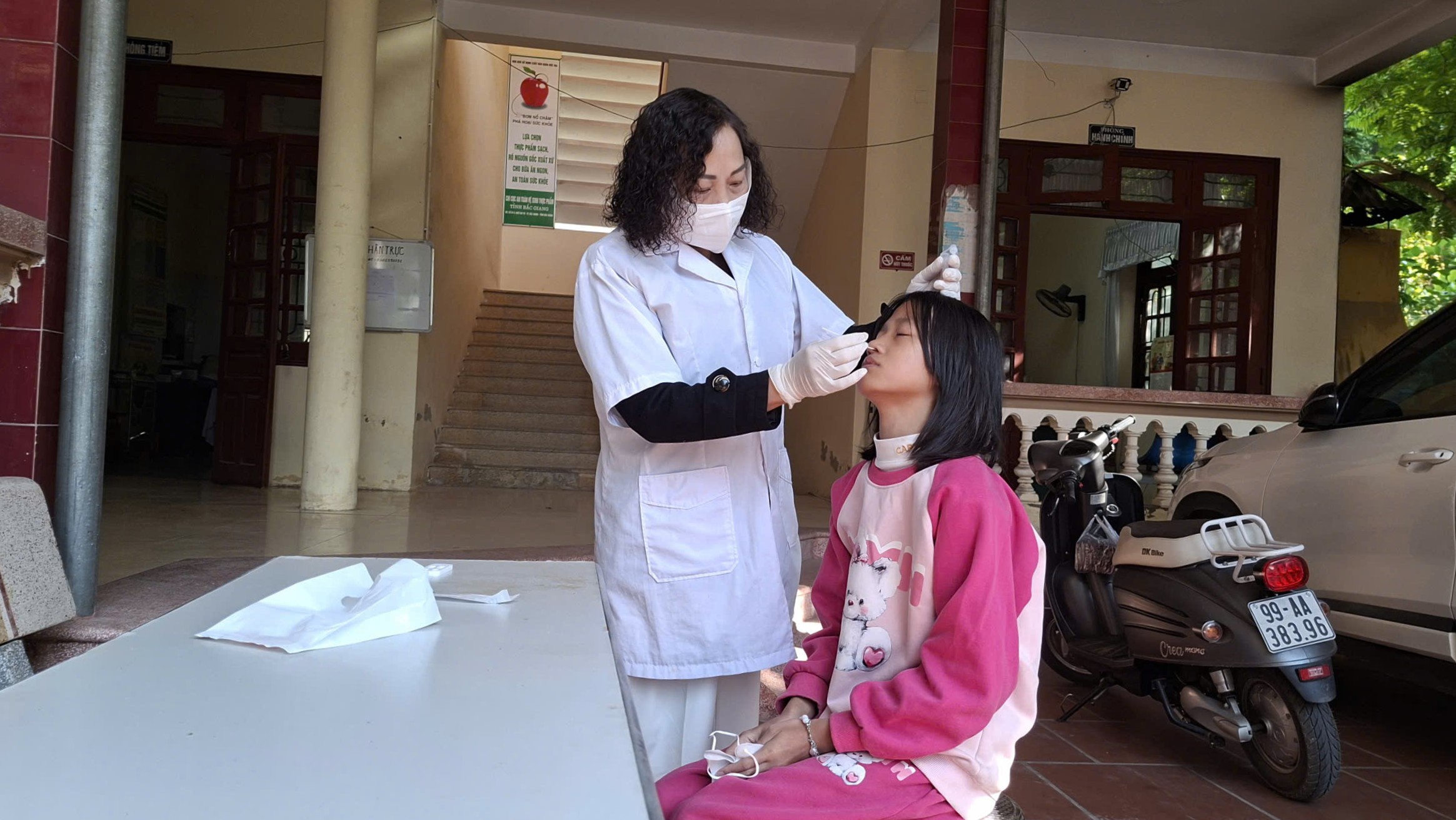 Nhân viên y tế Trạm Y tế Trần Phú (phường Bắc Giang) lấy mẫu xét nghiệm cúm cho trẻ em trên địa bàn phường. |