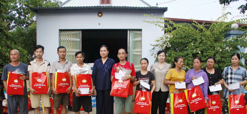 Phó Chủ tịch Ủy ban Trung ương MTTQ Việt Nam Hà Thị Nga thăm hỏi, tặng quà người dân bị ảnh hưởng bởi mưa lũ