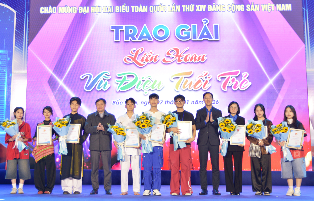 Ban tổ chức trao giải cho các đơn vị tham gia Liên hoan "Vũ điệu tuổi trẻ". |