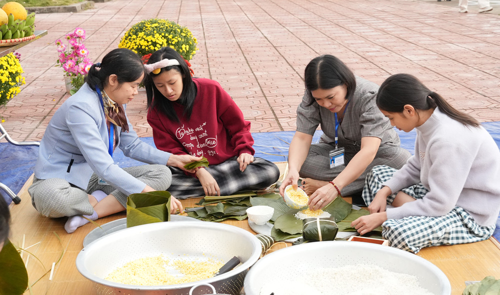 BẮC NINH - Ngày 20/1, Cơ sở Bảo trợ xã hội tổng hợp Bắc Ninh phối hợp với Trường Cao đẳng miền núi Bắc Giang tổ chức hoạt động trải nghiệm "Bánh chưng xanh - Chợ Tết quê em" tại cơ sở 2 của Cơ sở Bảo trợ xã hội tổng hợp Bắc Ninh (xã Tân Dĩnh).