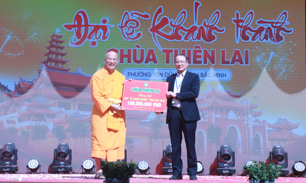 On this occasion, the Managing Board of the pagoda presented Bac Ninh province 100 million VND (3,787 USD) to support flood victims.