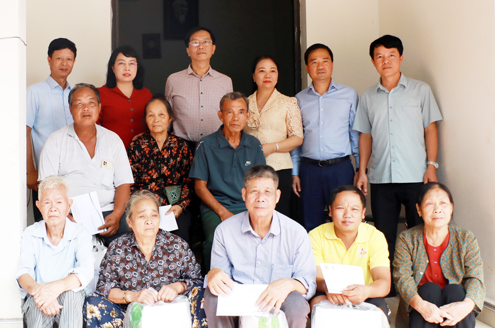 Đại diện lãnh đạo Ủy ban MTTQ tỉnh, Văn phòng Tỉnh ủy và Tập đoàn trao quà cho các hộ dân phường Đa Mai. |