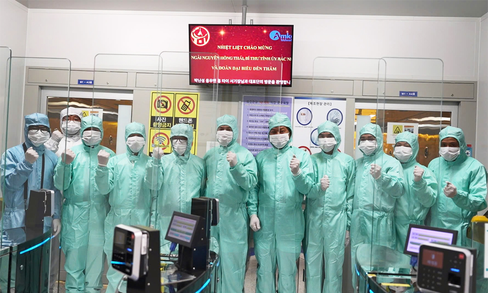Đoàn công tác tỉnh Bắc Ninh thăm nhà máy sản xuất của Amkor Technology. |