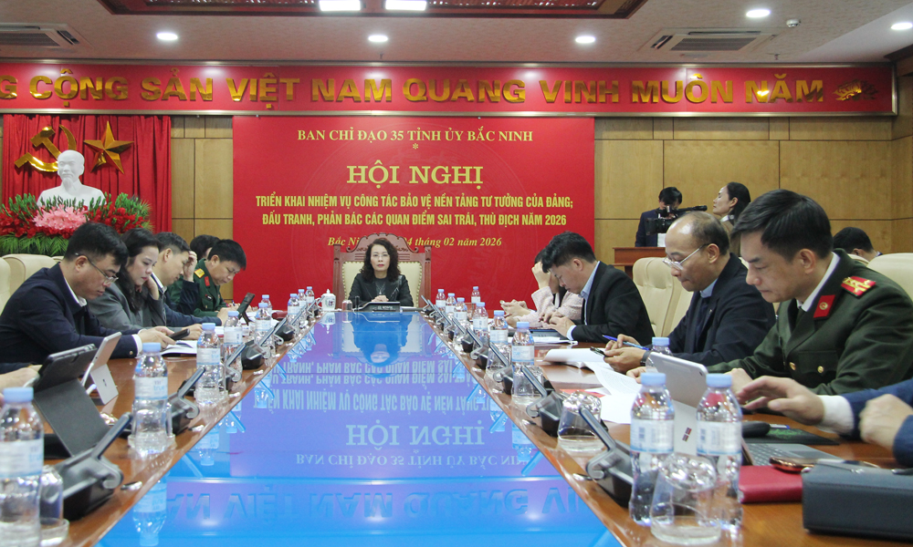BẮC NINH - Ngày 4/2, Ban Chỉ đạo 35 Tỉnh ủy Bắc Ninh triển khai nhiệm vụ công tác bảo vệ nền tảng tư tưởng của Đảng; đấu tranh, phản bác các quan điểm sai trái, thù địch năm 2026. Đồng chí Nguyễn Thị Hương, Phó Bí thư Thường trực Tỉnh ủy, Trưởng Ban Chỉ đạo chủ trì.