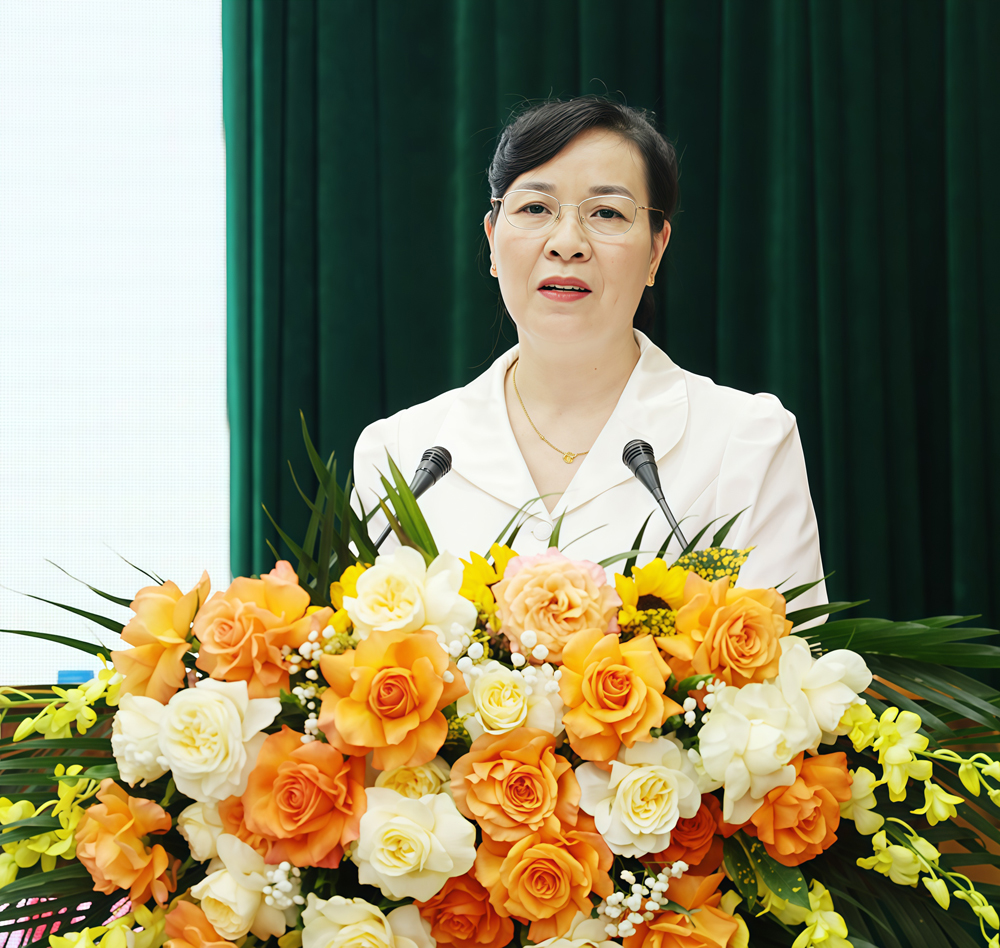 Đồng chí Nguyễn Thị Hà phát biểu kết luận tại hội nghị. |
