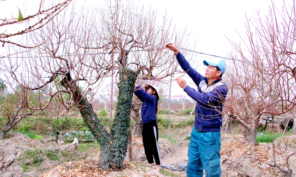 BẮC NINH - Còn hơn một tháng nữa mới đến Tết Nguyên đán nhưng không khí tại các vùng trồng đào trong tỉnh Bắc Ninh đã hối hả, nhộn nhịp. Tranh thủ những ngày nắng ấm, nông dân tất bật ra đồng chăm cây, chuẩn bị cho những gốc đào đẹp nhất đưa ra thị trường, mang lại thu nhập cao.