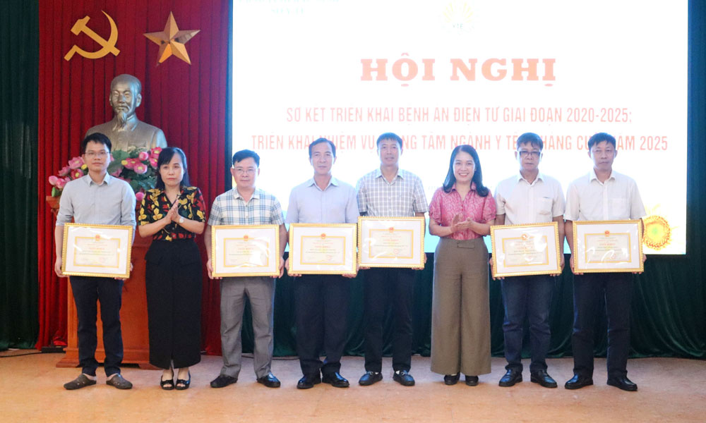 Lãnh đạo Sở Y tế tặng giấy khen cho các tập thể có thành tích tiêu biểu trong triển khai bệnh án điện tử giai đoạn 2020 - 2025. |