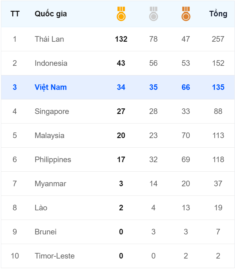 Tính đến trưa ngày 14/12, Đoàn Thể thao Việt Nam đã nâng tổng số Huy chương Vàng lên 32 khi xạ thủ Trịnh Thu Vinh xuất sắc giành thêm Huy chương Vàng cá nhân 10m súng ngắn hơi nữ và phá vỡ kỷ lục SEA Games. Ngày thi đấu của Bắn súng Việt Nam đang diễn ra cực kỳ thành công với cú đúp Huy chương Vàng và Huy chương Bạc chỉ trong buổi sáng.