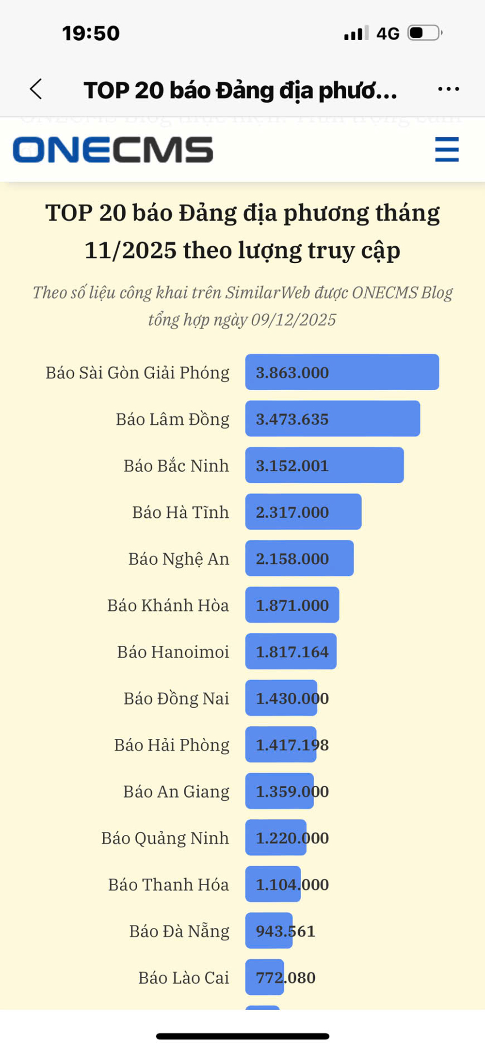 Bảng xếp hạng lượt truy cập tháng 10/2025. |