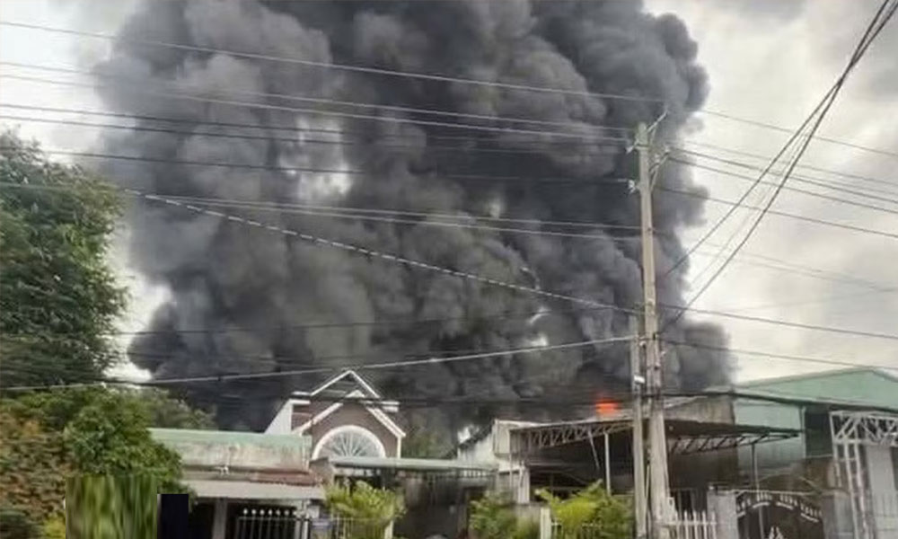 Trưa 19/4, một vụ cháy bùng phát tại xưởng gỗ trên đường Mỹ Phước-Tân Vạn, phường An Phú, Thành phố Hồ Chí Minh. Ngọn lửa xuất phát từ hệ thống bồn hút bụi mùn cưa, nhanh chóng lan rộng, kèm nhiều tiếng nổ lớn, cột khói đen bốc cao hàng chục mét.