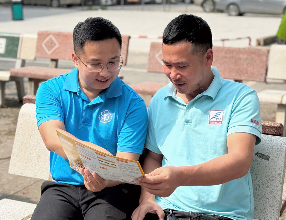 Cán bộ Bảo hiểm xã hội tỉnh tuyên truyền về chính sách bảo hiểm xã hội, bảo hiểm y tế cho người lao động. |
