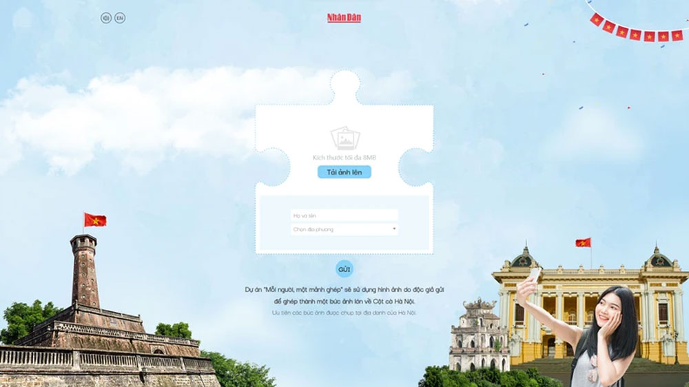 Nhân dịp kỷ niệm 70 năm Ngày Giải phóng Thủ đô, Báo Nhân Dân ra mắt dự án “Mỗi người, một mảnh ghép”. Dự án sẽ sử dụng hình ảnh do độc giả gửi để ghép thành một bức ảnh lớn về Cột cờ Hà Nội.