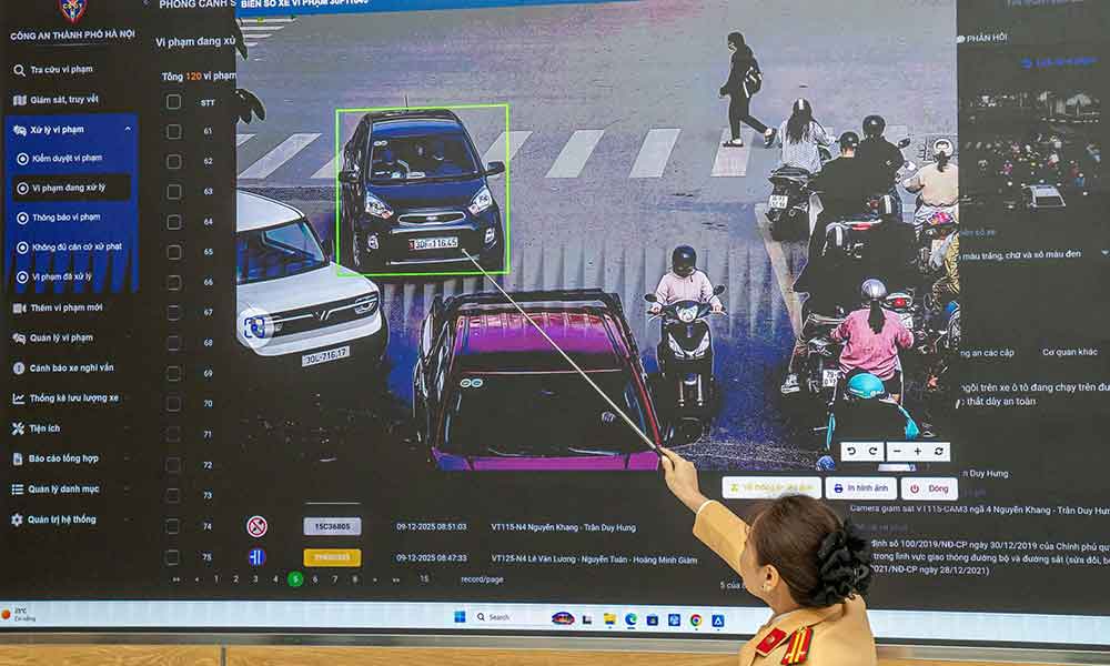 Hôm nay (13/12), Trung tâm điều khiển giao thông Hà Nội đã chính thức đi vào hoạt động. Dãy màn hình cỡ lớn được lắp đặt giữa phòng giúp cán bộ, chiến sĩ CSGT Hà Nội có thể theo dõi, giám sát toàn bộ diễn biến trên các tuyến phố của Thủ đô thông qua hình ảnh từ 1.837 camera AI ghi nhận và truyền về.