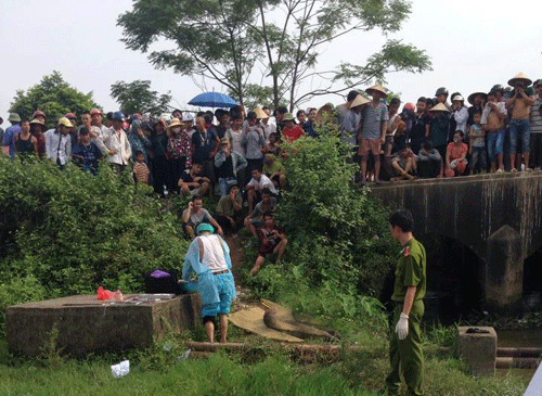 Cơ quan công an khám nghiệm tử thi vụ đuối nước ở xã Hoàng An, huyện Hiệp Hòa.