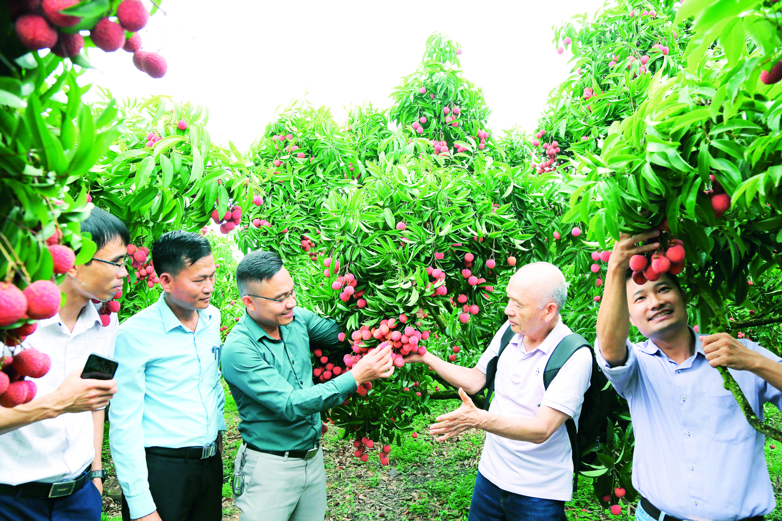Thương nhân nước ngoài khảo sát vùng vải thiều xuất khẩu tại phường Chũ.