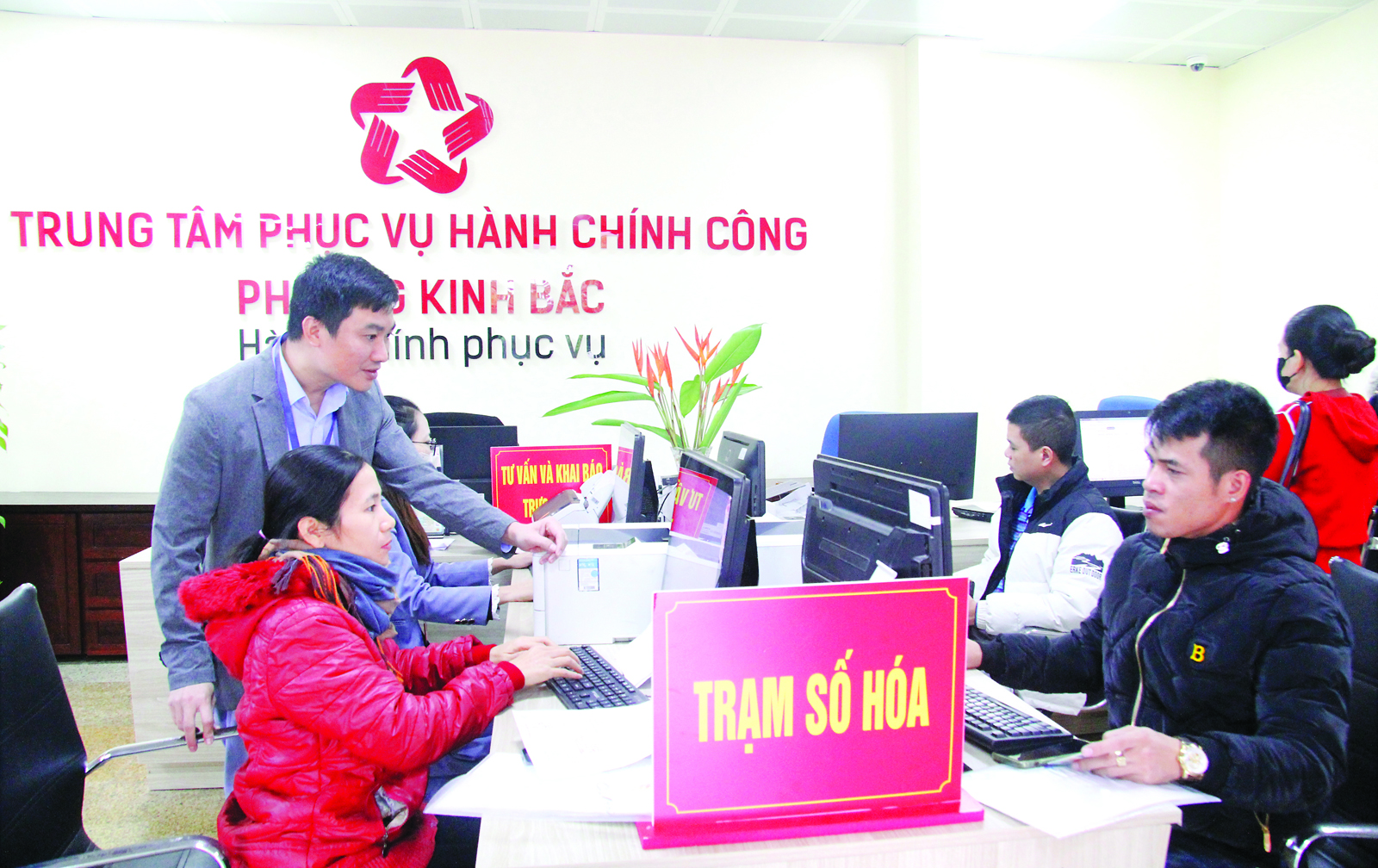 Trạm số hóa nộp thủ tục hành chính tại Trung tâm Phục vụ hành chính công phường Kinh Bắc.