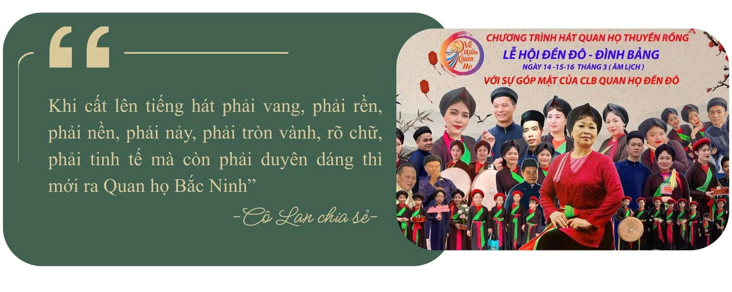 Những câu hát mộc mạc ấy giúp Quan họ bước ra khỏi không gian lễ hội, trở thành một phương thức giáo dục nhẹ nhàng, nơi các em đến với dân ca bằng sự thích thú, rồi từ đó học dần cách hát, cách sống và cách giữ gìn nếp văn hóa quê hương. Không chỉ mở lớp cho những học trò có năng khiếu, cô Lan còn tạo không gian học tập cho các em nhỏ có hoàn cảnh khó khăn hay kém may mắn. Với cô, Quan họ không chỉ là câu hát trên sân khấu, mà còn là cách để các em được hòa nhập và cất lên tiếng hát của mình.
