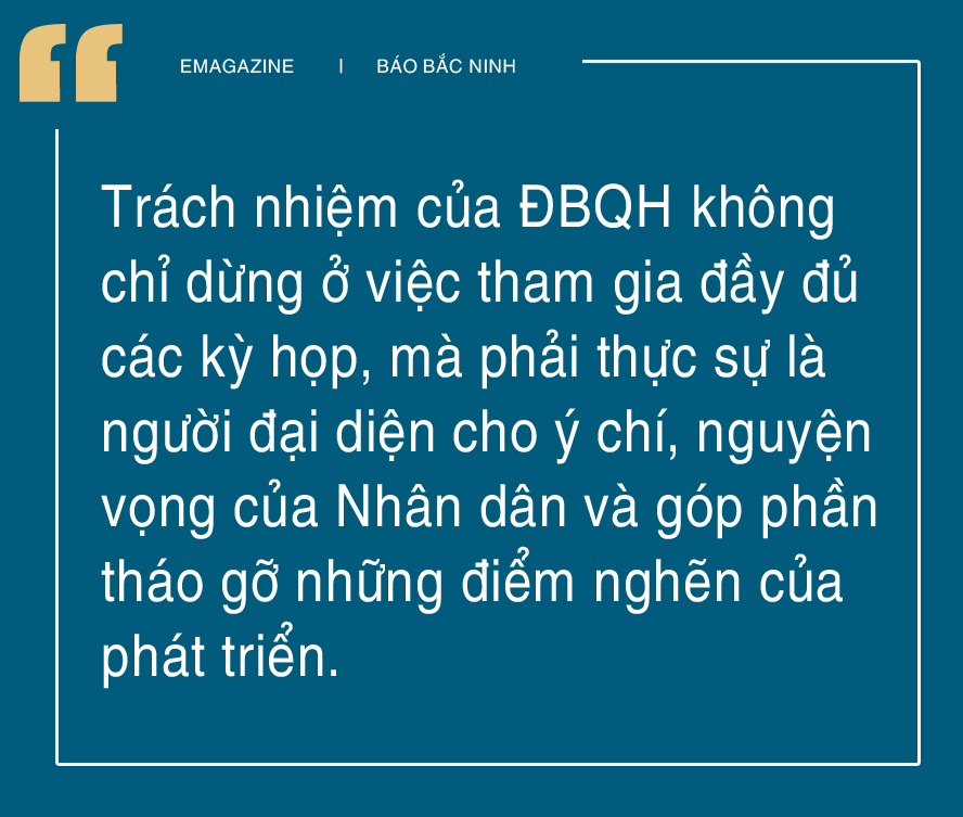 Mục tiêu cao nhất là làm sao để mỗi ý kiến đóng góp, mỗi quyết sách tại Quốc hội đều được kết tinh từ thực tiễn, phản ánh trung thực nhất những nút thắt, điểm nghẽn cũng như khát vọng vươn lên mạnh mẽ của người dân Kinh Bắc.