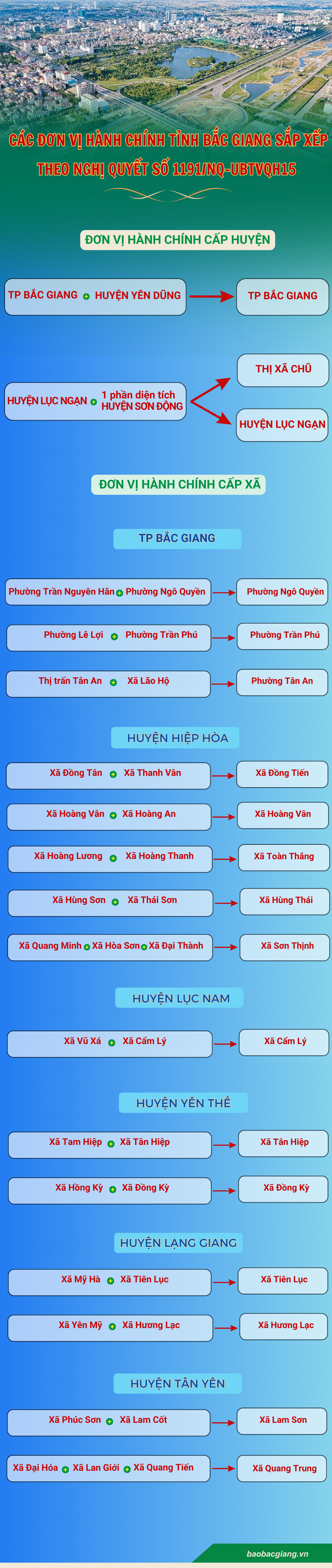 Các đơn vị hành chính tỉnh Bắc Giang sắp xếp theo Nghị quyết số 1191/NQ-UBTVQH15